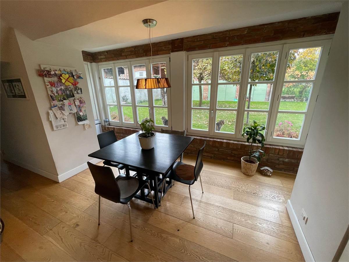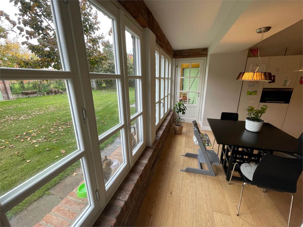 La casa ha cappotto e tetto coibentato, infissi in rovere laccato bianco, impianto di riscaldamento e raffrescamento a pavimento con deumidificazione, impianto fotovoltaico con pannelli solari e accumulo in pompa di calore da 300 litri, impianto di allarme a tre livelli, impianto antizanzare su tutta l'area verde di circa 1300 mq (300 di prato e 1000 di prato con orto e alberi da frutta), portone motorizzato, portico con tre posti auto, due box, 40 mq di nuova parte di cascina costruita nel 2022.
